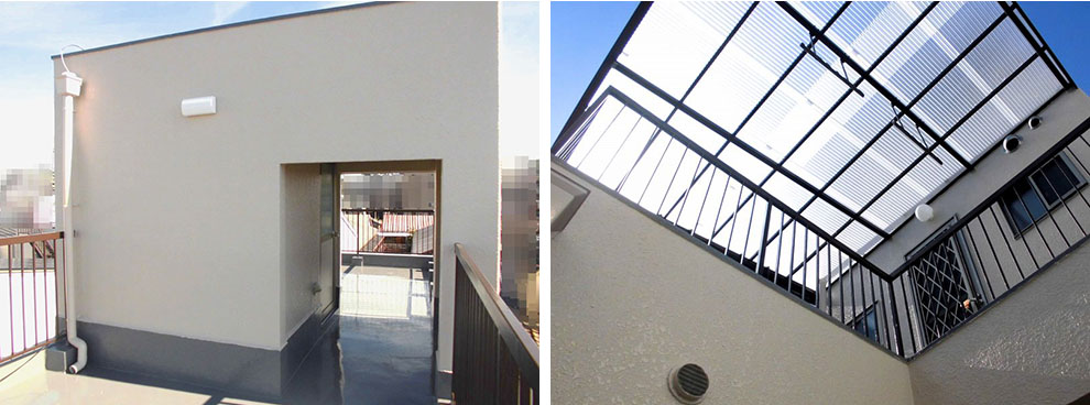 勝手口や手すり、屋上部分も塗り直しを行い、その佇まいは新築といっても頷けるものになりました。